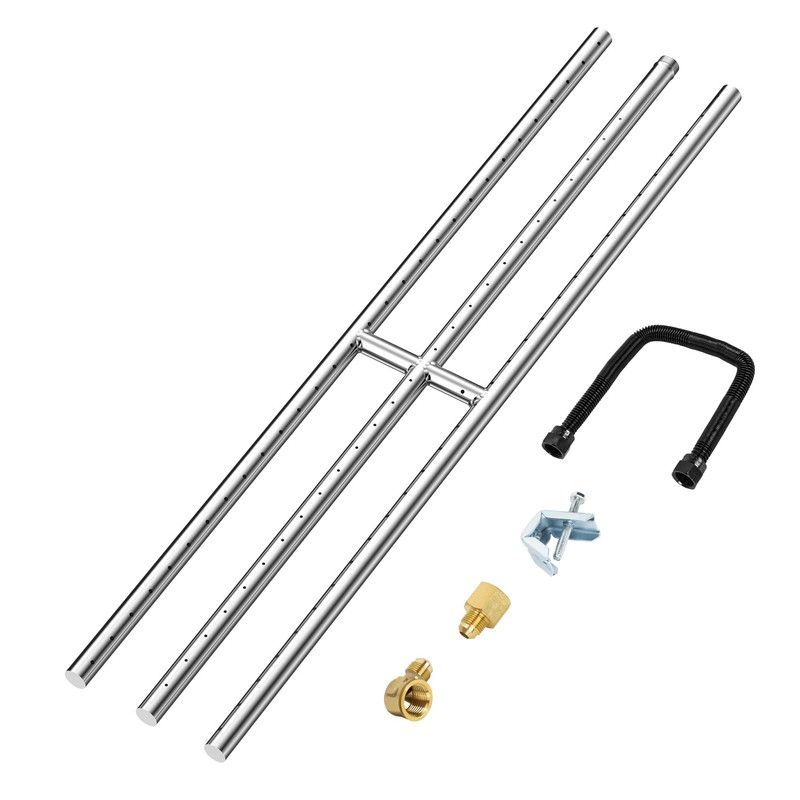 Skyflame 30" x 6" Rectangular Gas Fire Pit and Fireplace H-Burner with 3 Pipes - 304 Stainless Steel - for Indoor & Outdoor Use