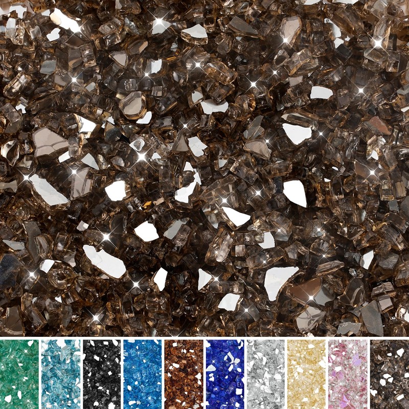 Skyflame High Luster 10-Pound Fire Glass for Fire Pit Fireplace Landscaping, 1/4-Inch Bronze Reflective