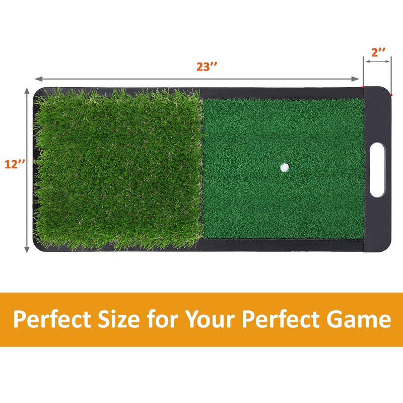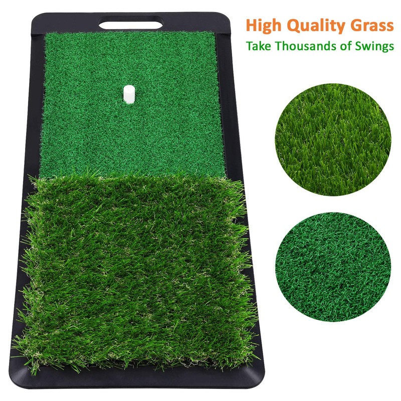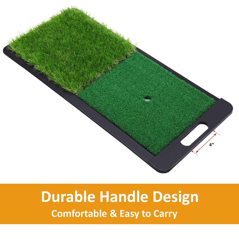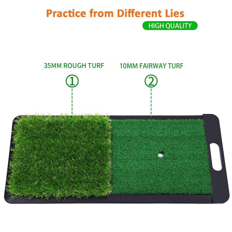 - ● TRAIN from DUAL LIES with HIGH QUALITY TURF: 35mm(1.38in) rough and 10mm(0.4in) fairway premium turf make it's the best training aid for you to perfect your game quickly and protect your backyard lawn without being tearing up.You can feel realistic practice experience at home.