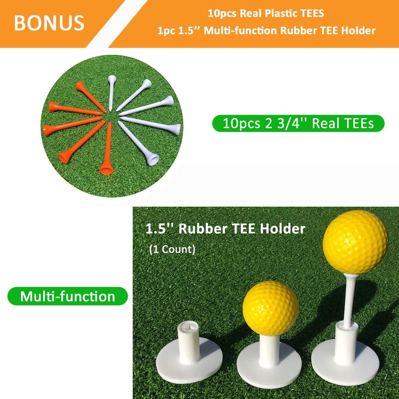 - ● BONUS: 10pcs 2 3/4'' Plastic Golf TEEs and 1pc Multi-function Rubber TEE Holder. BALLS ARE NOT INCLUDED.