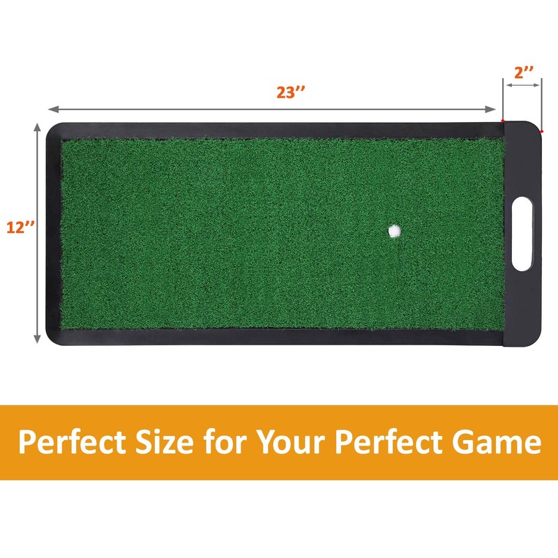 - ● TRAIN from FAIRWAY TURF with HIGH QUALITY ARTIFICIAL GRASS: 10mm(0.4in) fairway premium turf make it's the best training aid for you to perfect your game quickly and protect your backyard lawn without being tearing up.You can feel realistic practice experience at home.
