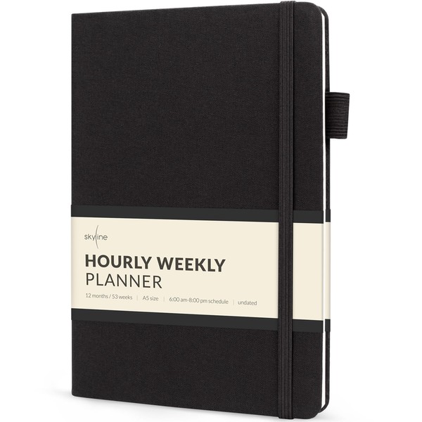 Skyline Hourly Weekly Planner – Undated Agenda & Daily Appointment Book – Time Blocking Notebook for Business Entrepreneurs, A5 (Black)