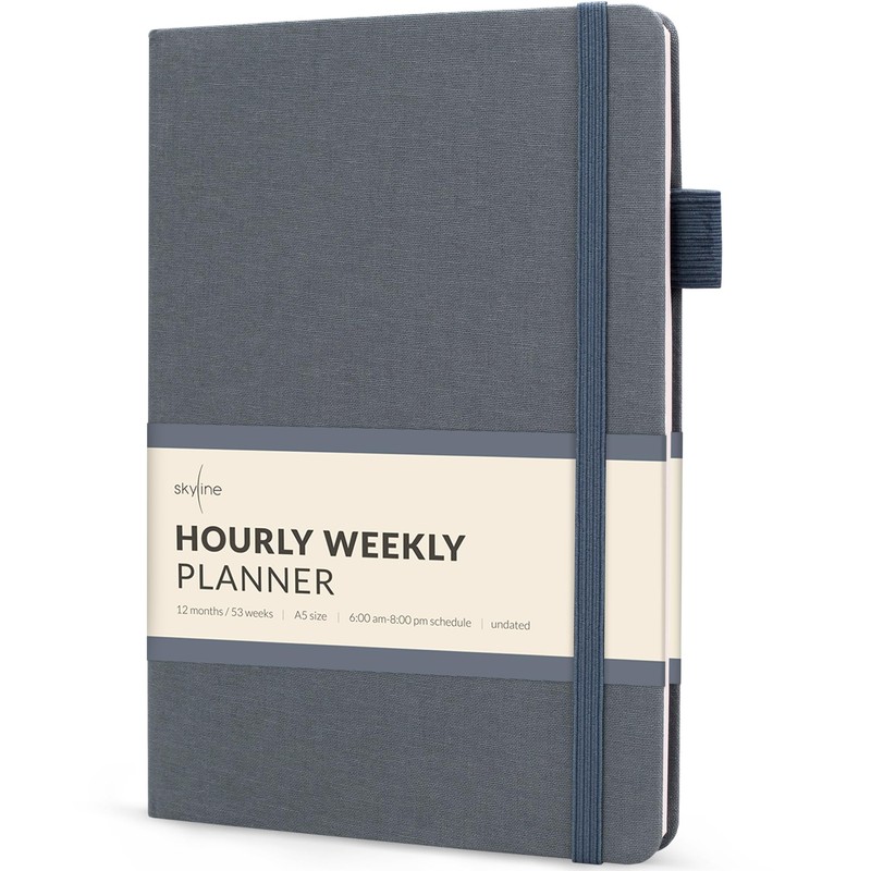 Skyline Hourly Weekly Planner – Undated Agenda & Daily Appointment Book – Time Blocking Notebook for Business Entrepreneurs, A5 (Space Blue)