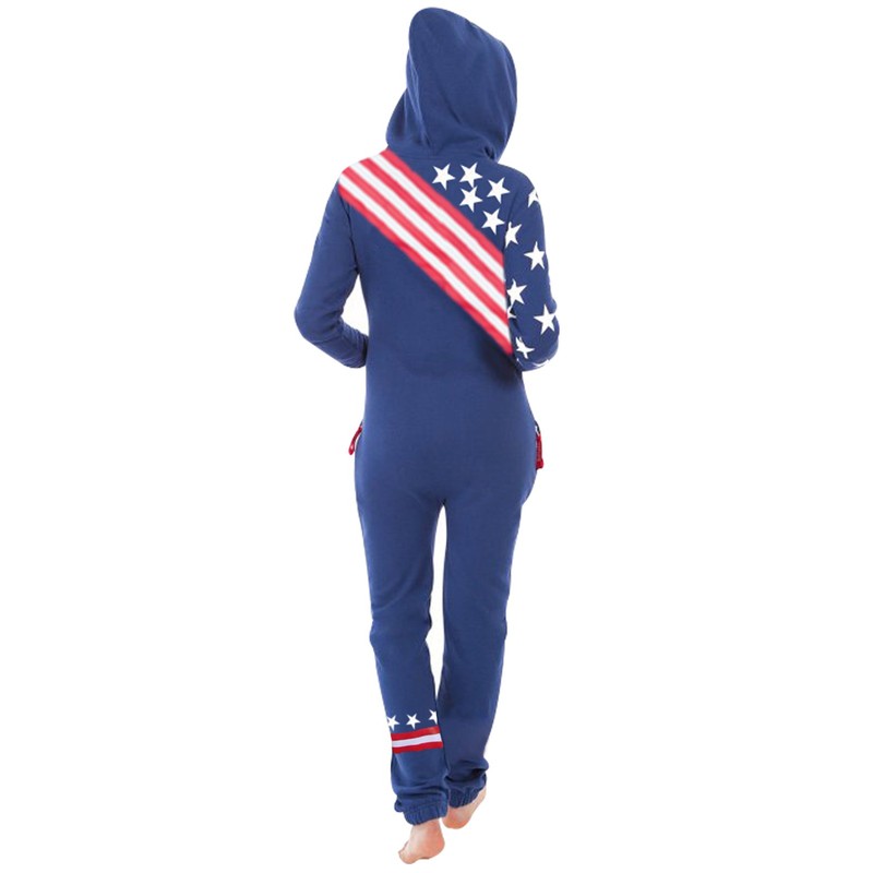 SKYLINEWEARS Women's Hooded Onesie Pajama Cozy Unisex Jumpsuit with Zip One-Piece Non Foot Playsuit Right US-Flag Dk Blue S