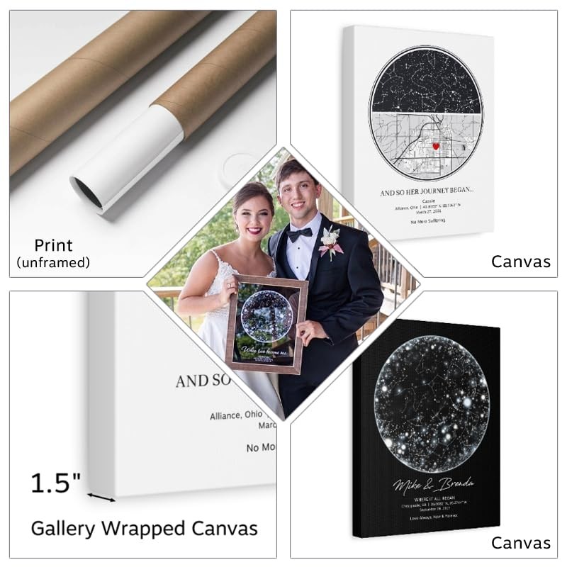 SkyPrintArt Custom Star Map Print or Canvas (9 Designs, Multiple Sizes), Personalized Constellation Map, Night Sky by date Wall Art, Unique Gift - Special Occasion, Wedding, Anniversary, Valentines Day)