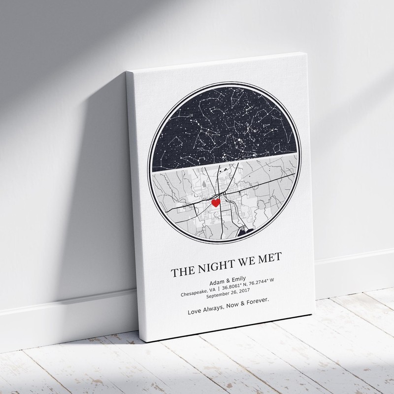 Personalized unique gift! Great for celebrating a Wedding, Anniversary, Valentines Day, birthday, anniversary, Mother's Day or Father's Day - the perfect gift for loved ones! I use state-of-the-art astronomy simulation software.I will create a night sky, the same as you have seen since the date and time of your special moment!!!.Check that the filling is correct.Select the Design for the star map - see Photo 3Please contact me if you have any questions, I will be happy to help you.