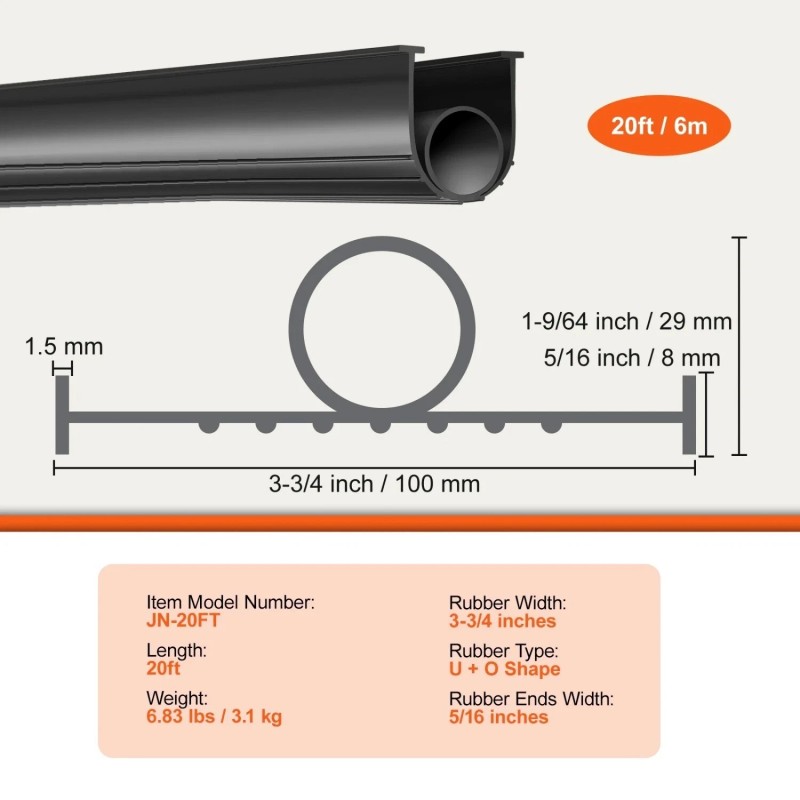 - Unique Design: With 5/16 inch T-ends and a 3 3/4 inch width, this garage door seal features a U-shaped + O-ring combination design. It's a heavy-duty weatherproof component that effectively prevents air, moisture, dust, and insects from entering your interior spaces. It also reduces the chances of outdoor winds making their way indoors, enhancing the building's insulation and thermal properties.