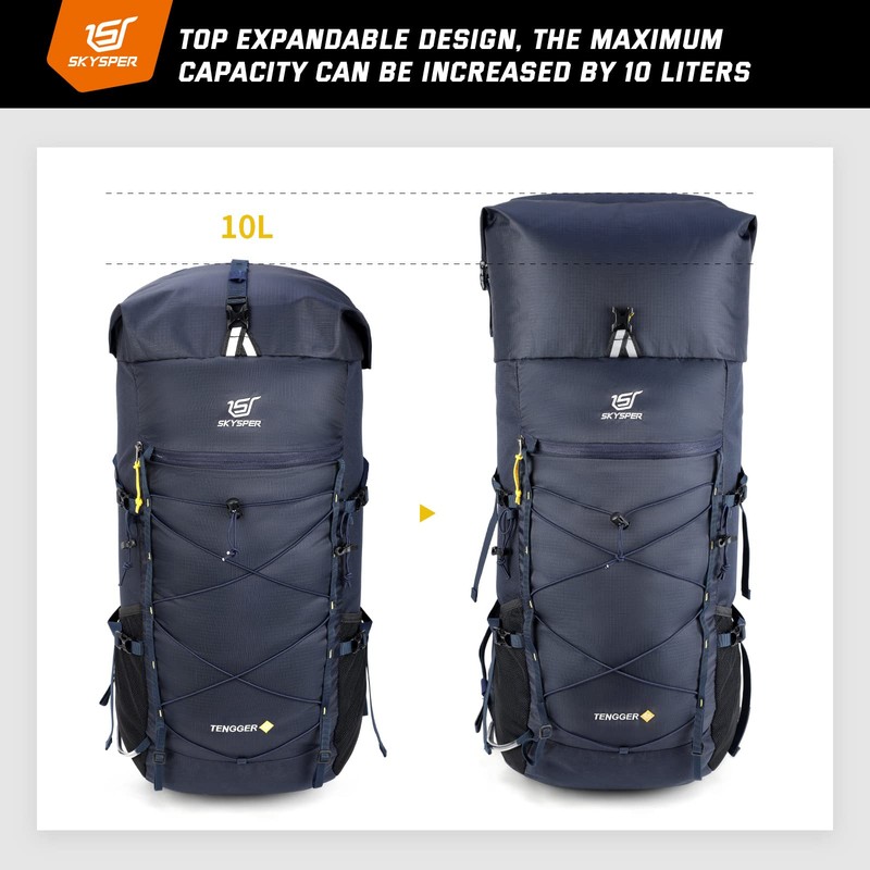 SKYSPER 50L Roll top Hiking Backpack! Designed for avid adventurers, this backpack is your reliable companion on all your hiking expeditions.