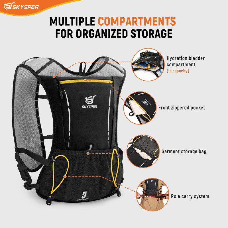 SKYSPER Hydration Backpack Hydration Vest Ultra Light 5L Hydration Bag with Soft Bottles 500 ml Hydration Vest for Hiking Marathon Trail Running Cycling