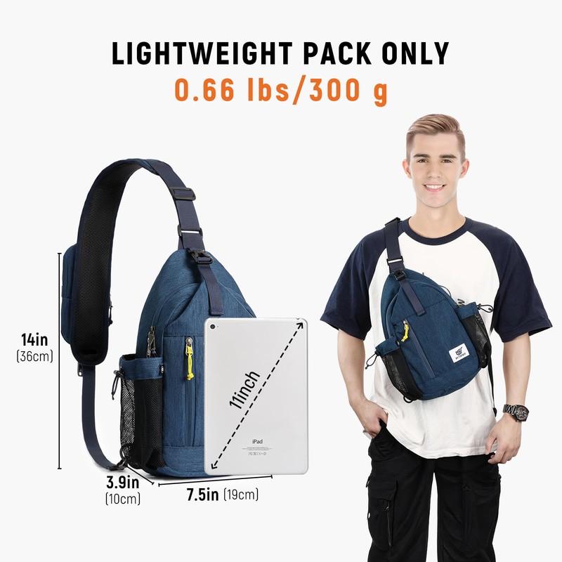 - Premium Material: Constructed from high-density, water-resistant, and tear-resistant fabric, our travel crossbody bag men women is built to withstand everyday adventures. Its lightweight build and practical design make it ideal for light-duty use on the go, setting it apart from other sling backpacks