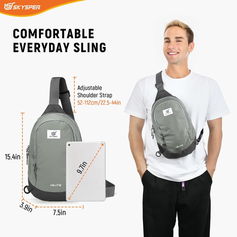 - Smart Layered Pockets: Our sling bag offers easy organization with a wide-opening main compartment for tablets up to 9.7 inches and a front pocket with a key clip for small items and quick access