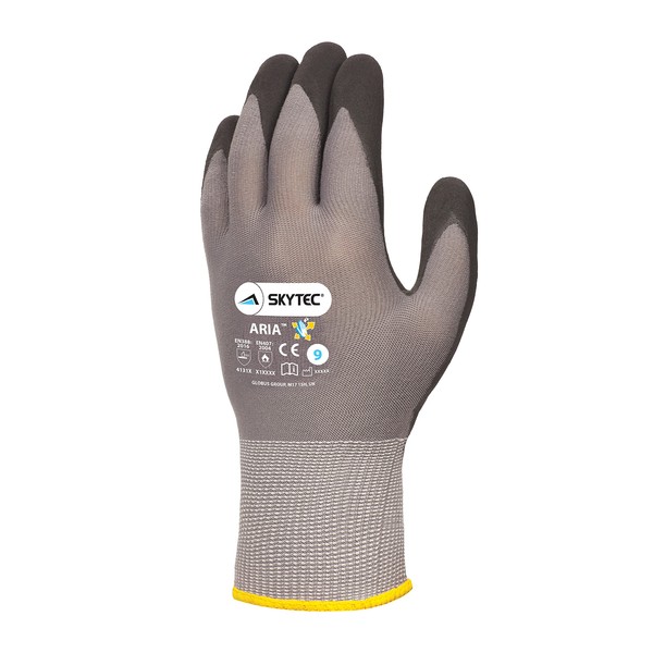 Skytec 1 Pack Aria Foam Grey Safety Work Gloves – Lightweight Nylon Gloves with Nitrile Coating and Secure Grip For Heavy-duty Work(Medium)