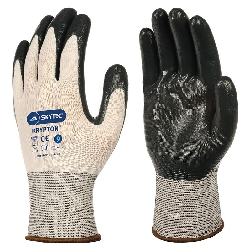 Skytec KRYPTON White/Black Nylon Safety Work Gloves with Nitrile Coating that Provides Abrasion Resistance - XL