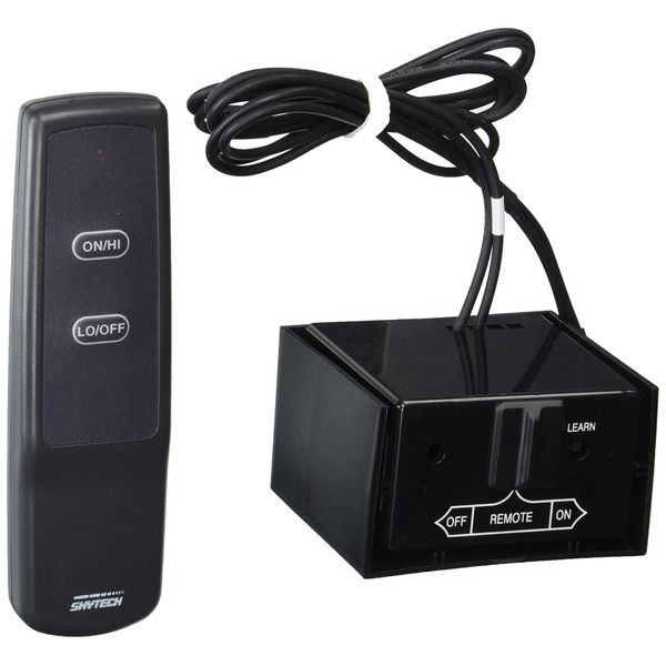 - Battery powered receiver box with learn function and on/remote/off slider switch