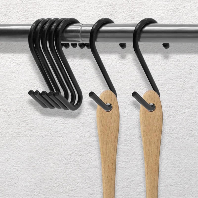- S hooks stainless steel: the 20 pieces S hooks black made of stainless steel are ideal for storing clothes, towels and other items in the wardrobe, kitchen or bathroom.