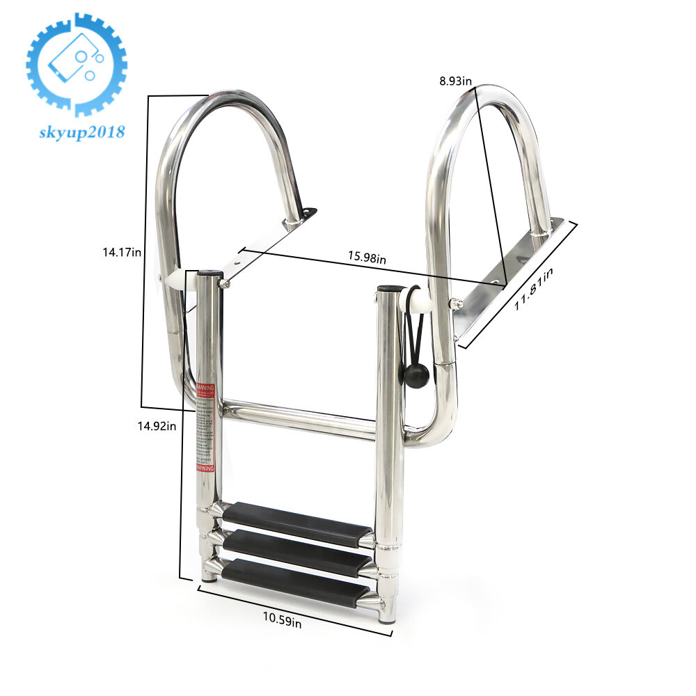 skyup2018 3 Steps Boat Ladder Stainless Steel Telescoping For Marine Boat Swimming Pool
