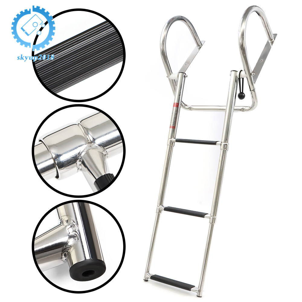 Boat Ladder Stainless Steel in-Board 3 Steps Telescoping For Marine Boat Yacht Swimming Pool
