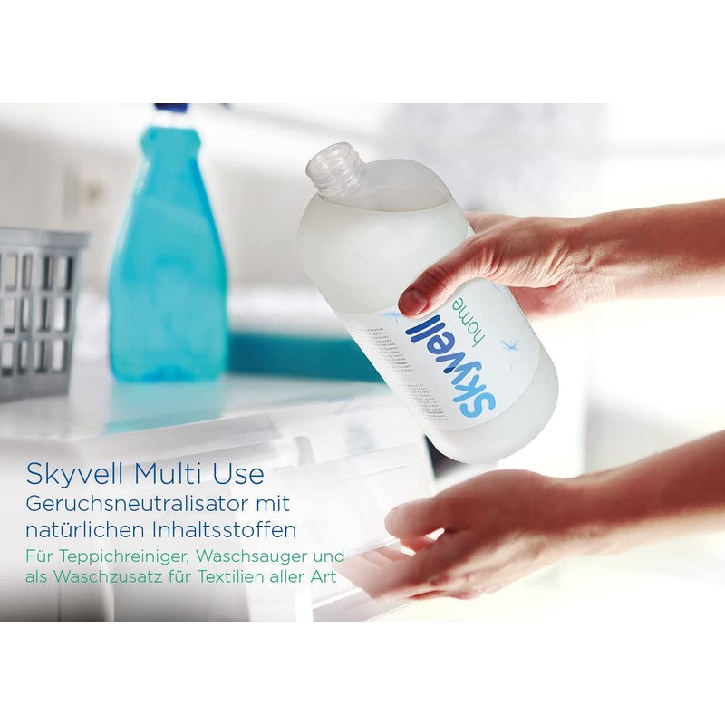 For carpet cleaners, washing vacuum cleaners and as a washing additive for textiles of all kinds. For extremely stubborn odours in carpets, upholstery and other surfaces (e.g. floors, tiles, joints), the Skyvell Multi Use does the rest.