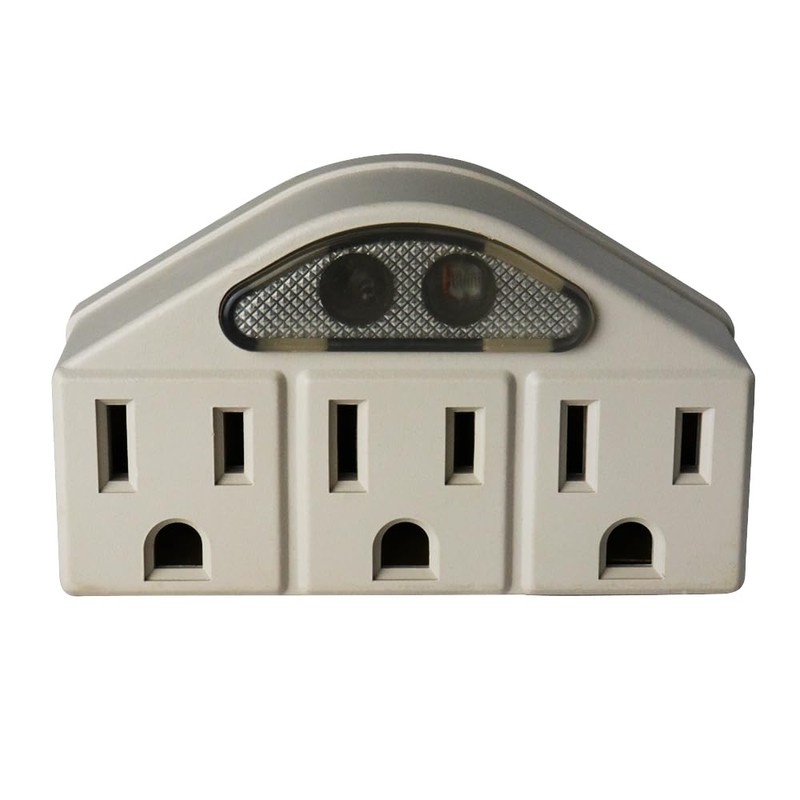 This 3-outlet AC adapter is UL approved. Converts one outlet into three so that multiple appliances can be plugged into the same outlet at the same time. Includes a handy amber-colored night light.