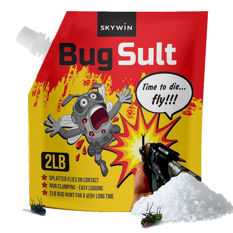 - [ Faster Reloads for the Salt Shooters for Bugs ] - Tired of reloading your salt fly shooters too often? Skywin 2 lbs. Fly Salt for Fly Shooters – Large Grain Salt for Fly Shooters is here to help! With its easy-pour spout, you can enjoy faster reloading and get more shots in salt shooters for insects