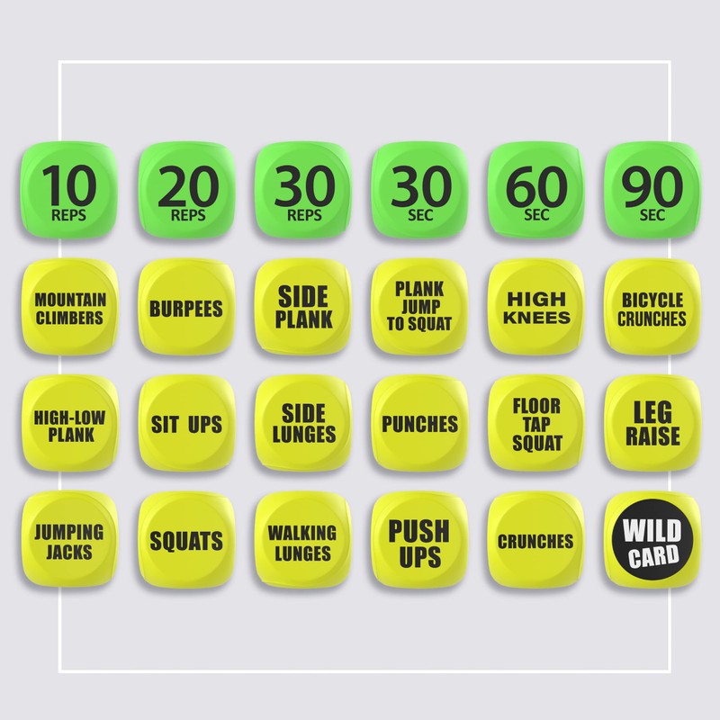 - Great for group fitness classes. Toss the dice and the one that appears on top is the next workout to perform