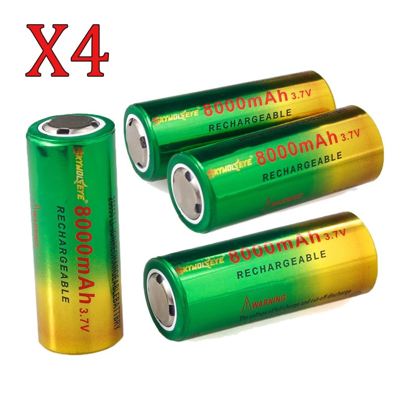 Skywolfeye 4pcs Skywolfeye 26650 Battery 3.7V Rechargeable Batteries Cell