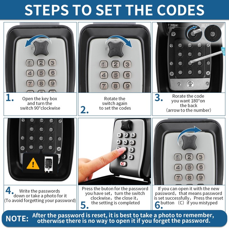 - 【One Box For Multiple Uses 】The car Key Lock Box Can be hung on the car window by rolling up the window, or mount it on the wall, It is only necessary to remove The upper handle before installation. The included small screwdriver is convenient for you to set the password. (Note: Please read the instructions carefully before setting the password, and remember your password after setting the password to avoid the situation of not being able to open the box)