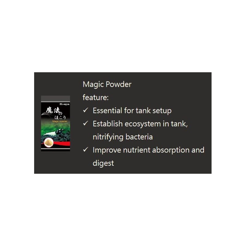 Magic powder also contains a high content of filter bacteria which ensure optimal conversion of waste products and maintain the natural balance in the aquarium. These bacteria also ensure a quick start of the aquarium. Besides this the filter bacteria maintain the level of bacteria in the filter and bottom.