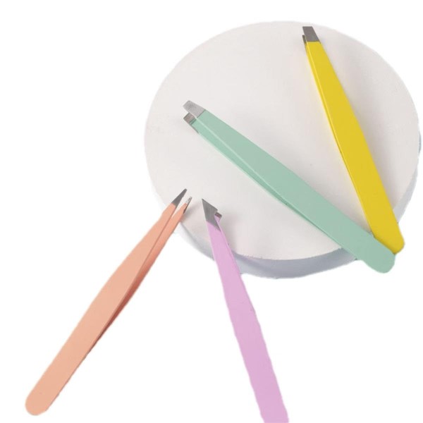 Slanted Eyebrow Tweezers Set, 9.5cm, Pastel Colors, 4 Pack