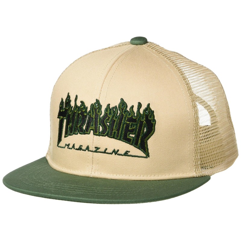 Slasher 23TH-C09K / FLAME LOGO CAP Kids Flat Cap (Half Mesh Specification) Hat, BGE/GRN