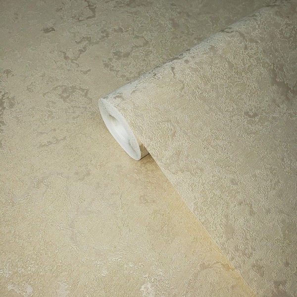Slavyanski Embossed Modern Plain Faux Plaster Effect Vinyl Wallpaper Beige and Gold Glitter Textured strippable wallcovering 3D