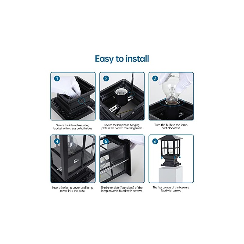 - ☀【HARD-WIRED AND EASY INSTALLATION】- This exterior pendant lantern light fixture includes all needed mounting hardware for quick and easy installation.Package include: 1 x outdoor post light fixture, 1 x installation accessories pack, 1 x installation instruction.