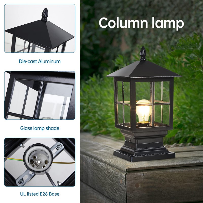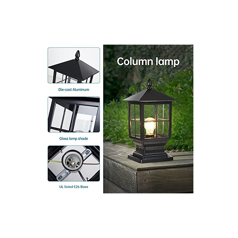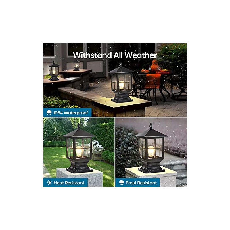 - ☀【High-quality Material】: Outdoor porch Pillar Lamp are made of Quality aluminum material, high temperature paint technology, waterproof IP54, rain does not rust, high temperature windproof glass lampshade durable,shiny,long service life.