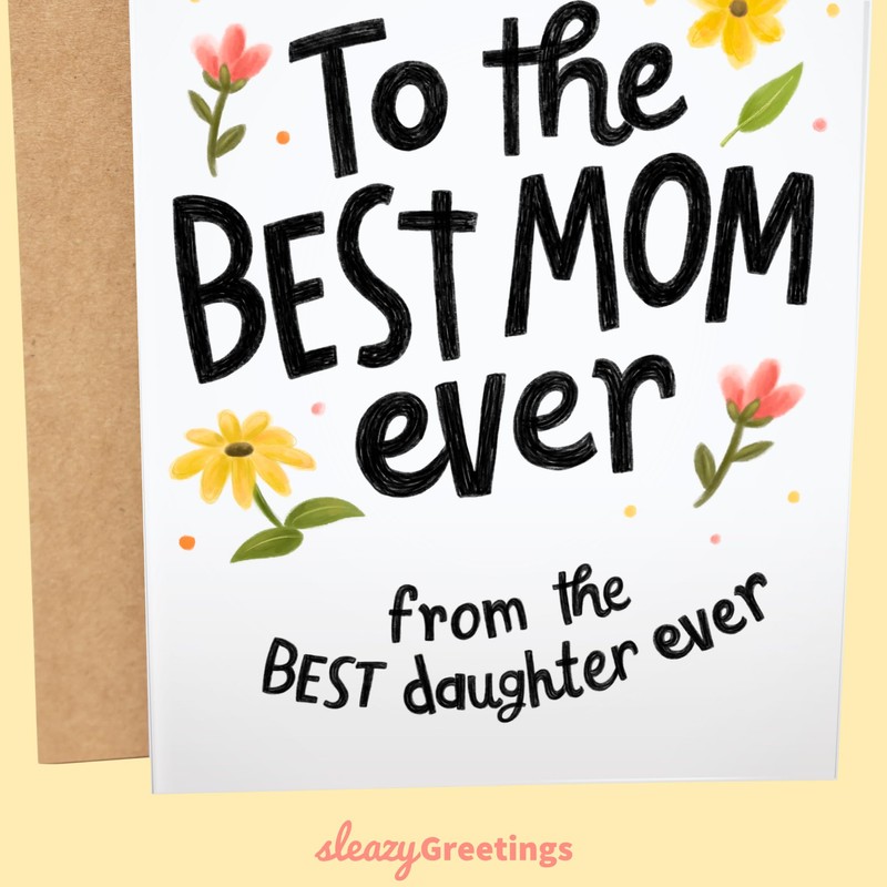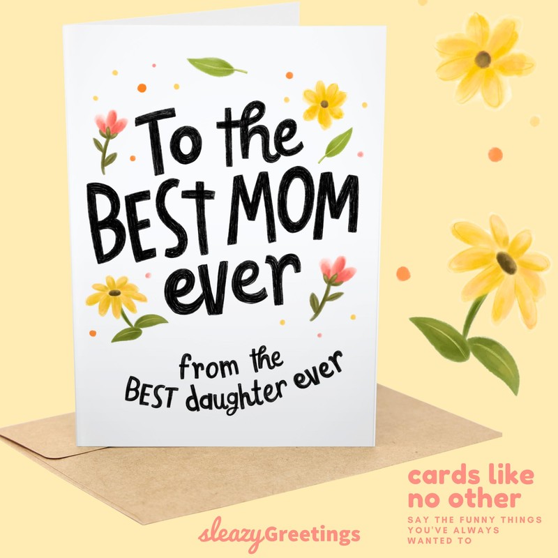 Sleazy Greetings Funny Happy Mother's Day Card For Mom From Daughter Son | 5 x 7 Funny Birthday Card For Mom With Matching Envelope | To The Best Mom Ever From The Best Daughter Ever Card