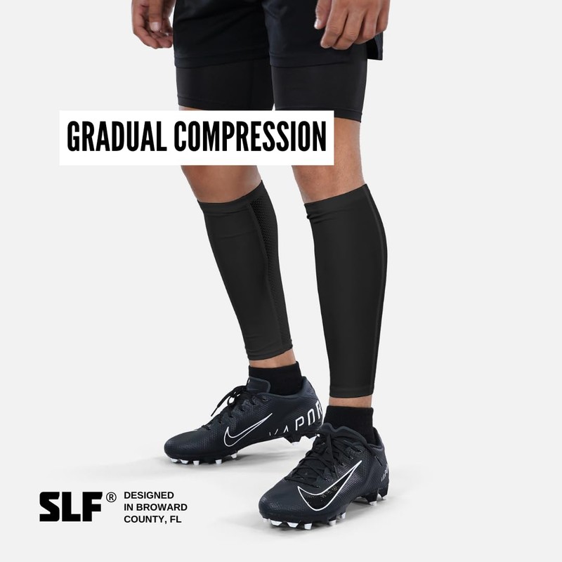 • SHIN SPLINTS PAIN RELIEF: Not only do they protect your shins and compress the pain while running, but these leg sleeves also protect your skin from being cleated or scraped while playing under high intensity.