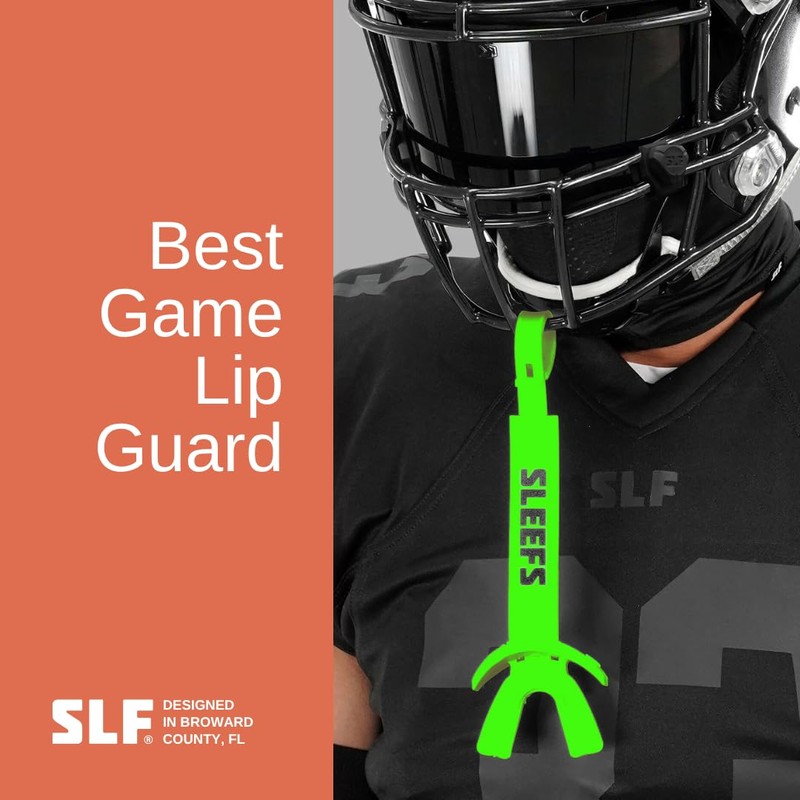 SLEEFS X Hot Green Football Mouth Guard - Lip/Mouthguard with Helmet Strap - Lip/Teeth Protector Mouthpiece - Moldable - for Youth/Adults, Men & Women Mouth Guard, Maximum Air Flow, All Sports
