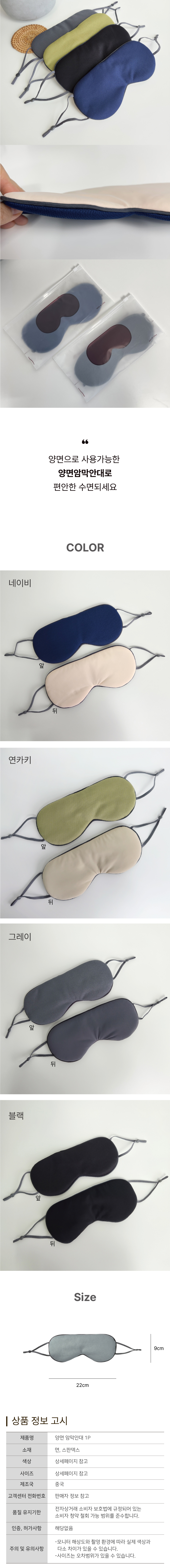 Sleep double-sided eye mask nap travel Blackout eye patch navy 2ea
