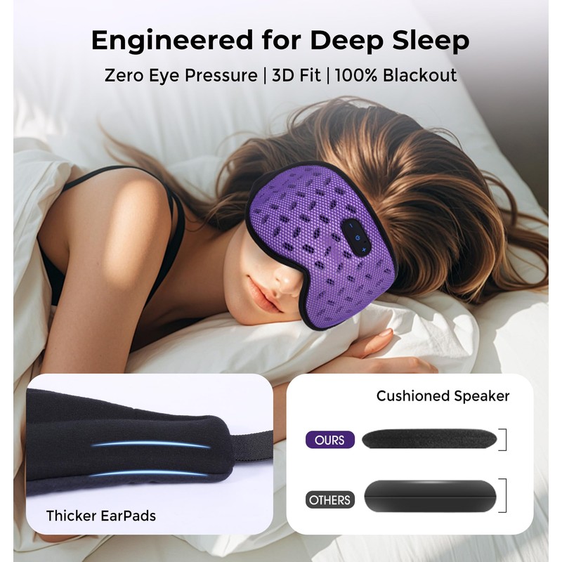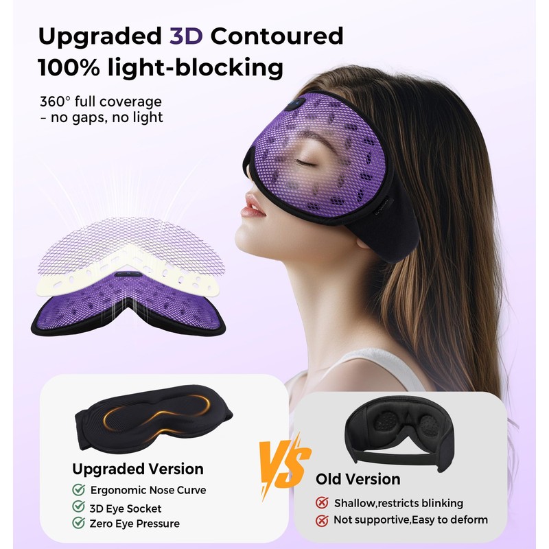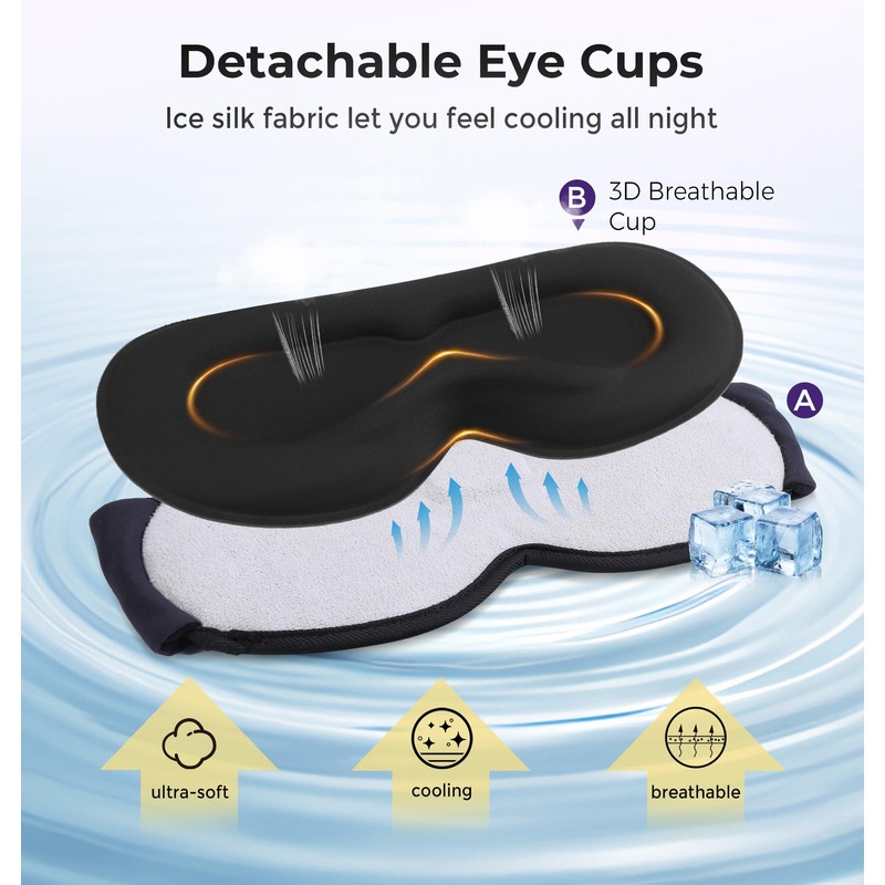 - 🌙Upgraded Detachable Cup Cover Design:Bluetooth eye mask features removable 3D eye cups that fit gently to block out all light and reduce pressure on your eyes. This thoughtful design lets you handle assembly and disassembly in seconds, so you can seamlessly enjoy both restful sleep and your favorite music effortlessly.