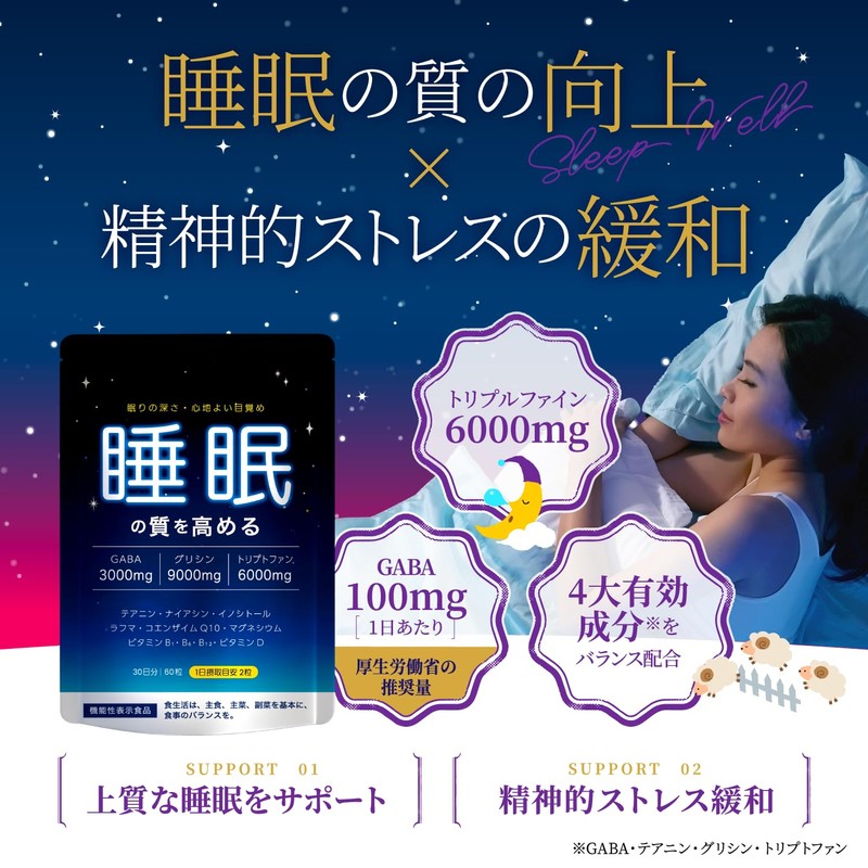 Sleep Supplement with GABA Formula, 3000 mg Glycine 9000 mg Improves Sleep Quality and Stress Relief Tryptophan 6000 mg