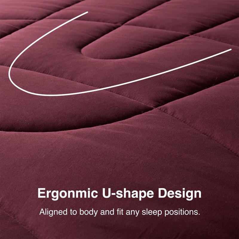 - U-SHAPE ERGONOMIC QUILTING - After many sleep tests, we finally found this U-Shape quilting design which can keep filling well-distributed and avoid any shifting and clumping, Perfectly fit human body curves regardless if you are a side sleeper, back sleeper or stomach sleeper. Extra filling in 4 sides effectively blocks out the cold air and keeps you warm all night