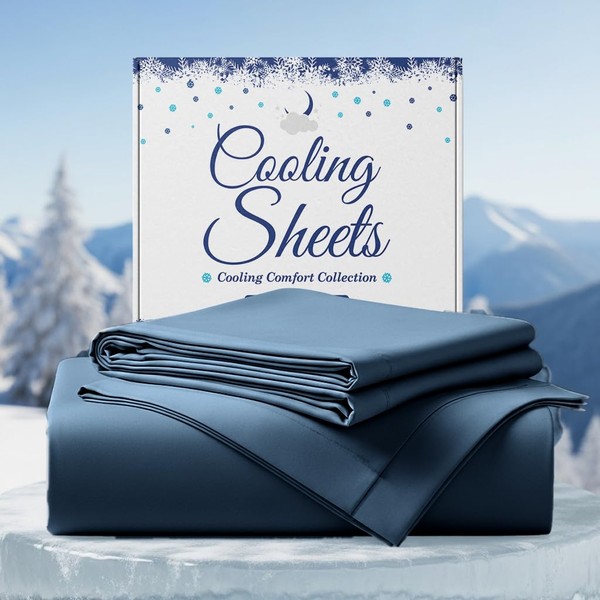 SLEEPHORIA 4 PC Cooling Sheets Queen Size Bed Set - Temperature Regulating Bedding for Hot Sleepers - Deep Pocket Cooling Bed Sheets Queen for Night Sweats and All-Night Cool Comfort (Navy Blue)