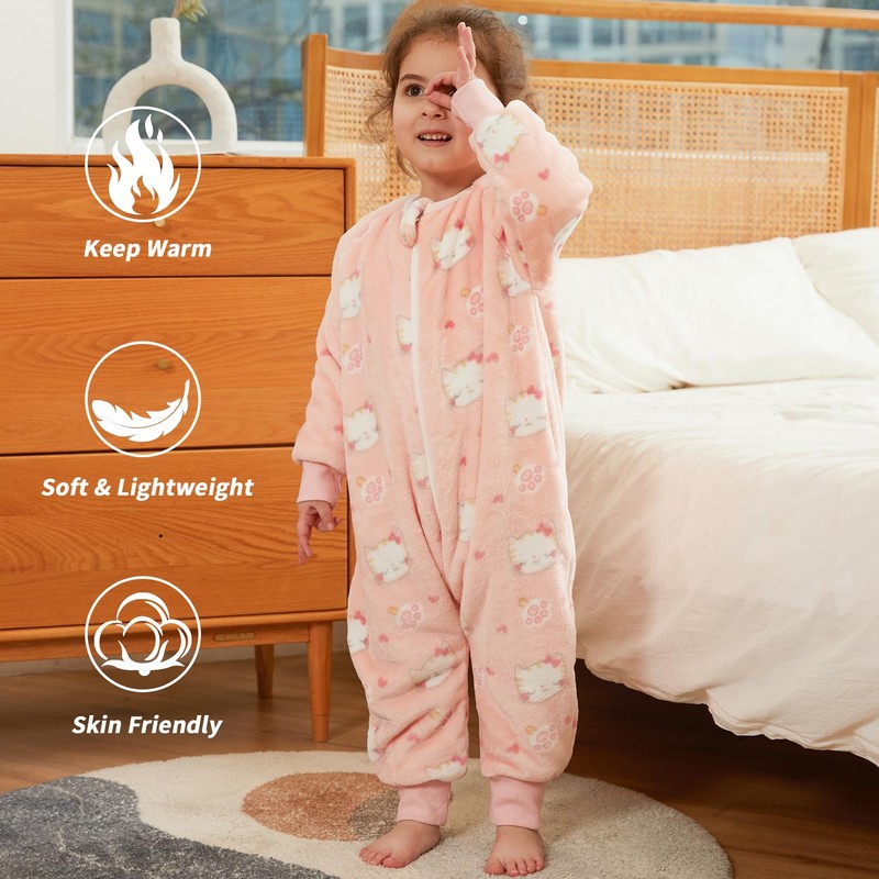 Sleeping Bag with Feet, Baby Pyjamas, Warm Flannel Winter Sleeping Bag, Romper with Zip, Winter Sleeping Bag with Legs, Sleeves, Pyjamas, Children's Sleepsuit, Girls, Boys, 0-6 Years, Kat Rosa