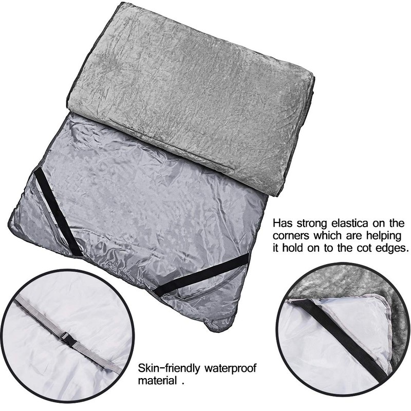 Sleeping Cot Pads (75" x 29") Portable for Camping & Hiking with Elastic Straps, Cotton Soft Thick Cot Pad,Waterproof - Grey