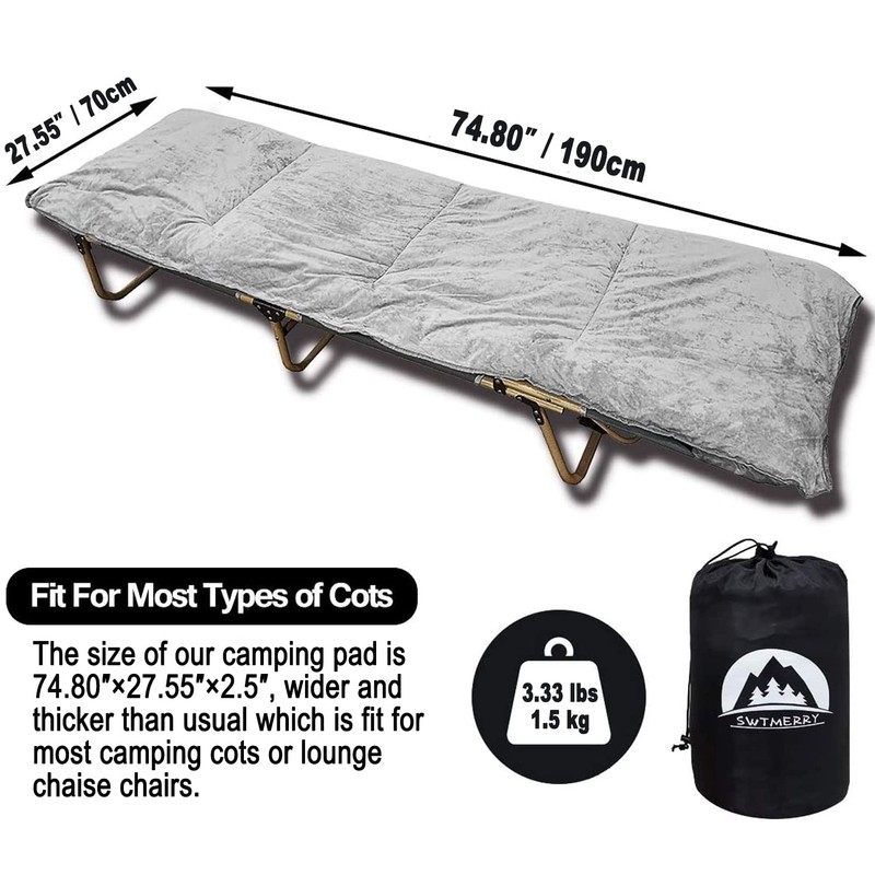 - Convenient and Easy to Carry: The sleeping camping cot pad can be easily installed or folded up into an included storage bag .