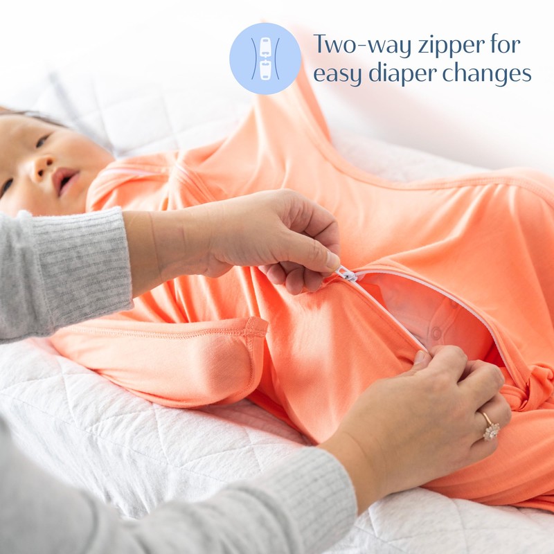 SleepingBaby EverSoft Zipadee-Zip Transition Swaddle - Roomy Wearable Blanket with Two Way Zipper - Viscose from Bamboo - Peach Fuzz, X-Small (3-6 Month)