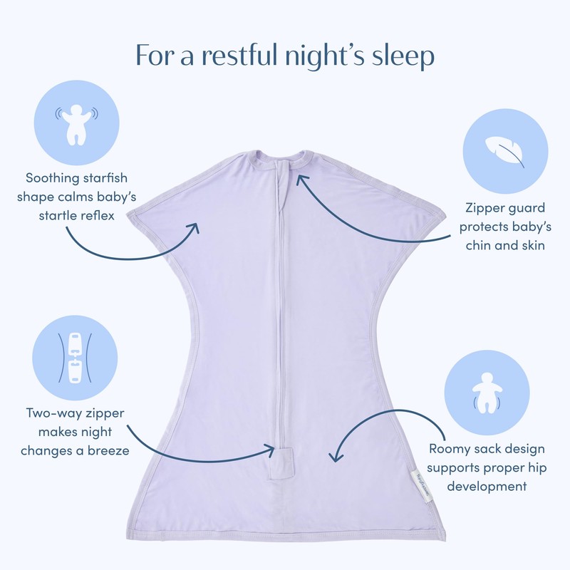 - Unique Starfish Design: Inspired by the gentle contours of the womb, our zip-up swaddle features a distinctive starfish design which provides a cozy, secure sensation without restricting movement. This ergonomic shape helps your baby feel more at ease, leading to improved sleep patterns