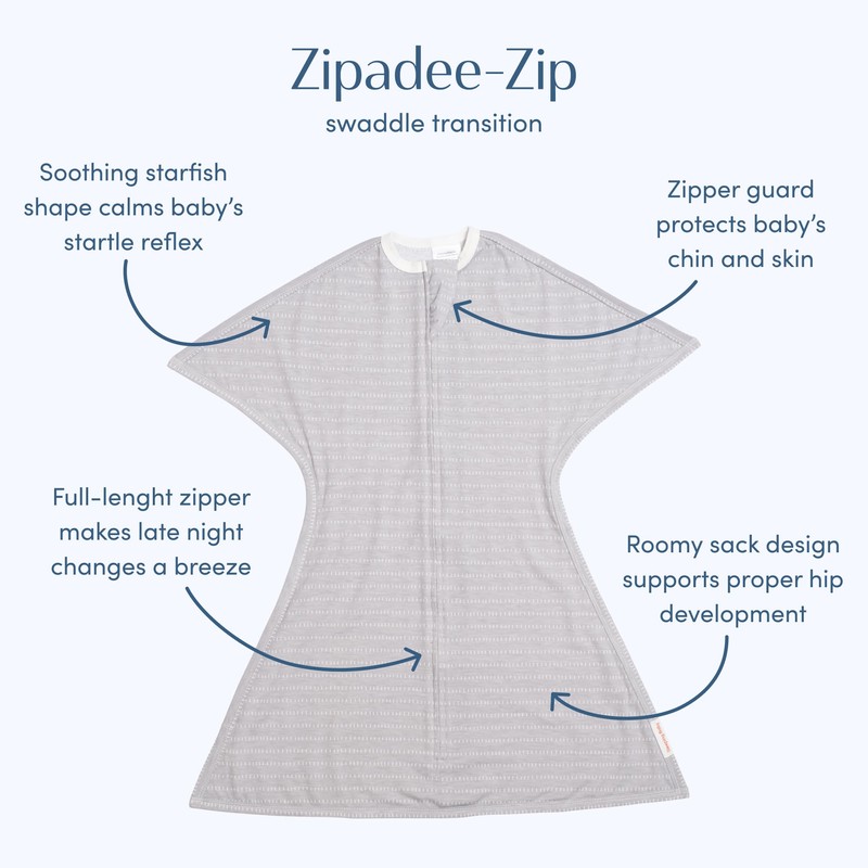 - Cozy Zipadee-Zip Sleeper: Our comfortable Zipadee-Zip swaddle transition sack acts as a wearable blanket that not only keeps your baby warm and cozy, but acts as a swaddle transition as well. The unique starfish design provides the comforting, enclosed feeling of the swaddle but without limiting your baby’s full range of motion