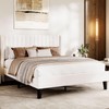 SLEKVERSA Full Size Velvet Bed Frame, Vertical Channel Tufted Wingback Headboard, Upholstered Platform Bed, Wood Slats, No Box Spring Needed, Easy Assembly, White