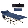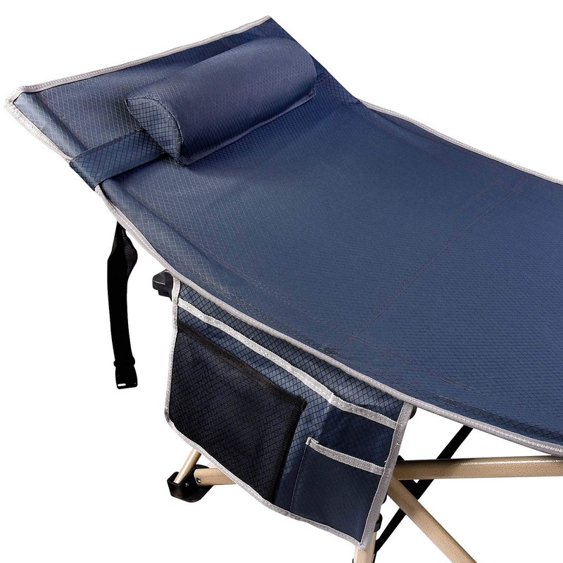 - 【Extra Pillow and Carry Bag】The sleeping cot has matching pillow for sleeping, reading,resting and more. The 3-IN-1 organizer pocket is for storing your cell phone,keys,water bottle,toys,earplugs and more. A high quality nylon bag with handle for storage and carry. Perfect for camping, backpacking, beach, backyard, hiking, office etc. Use together with mattress pad, sleeping bag, pillow in 4 seasons.