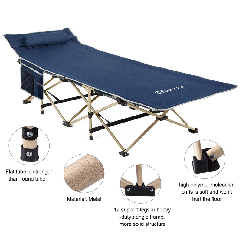 - 【1200D Double Layer Polyester Oxford】Using softer bed surface than other folding beds on the market, the lying experience is better.Slendor Camping Cot is constructed in a Double Layer of upgrade 1200D polyester for superior strength, water risistance and easy cleaning, this heavy duty cot is softable, breathable. Gentle incline promises no more morning back, neck or shoulder ache!